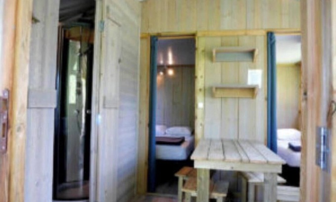 The two Mobil'tentes of the Moulin de la Gassotte campsite are designed, on the same model, to accommodate 4 people and are located on the banks of the river (secure access). In 30 m2 of an optimized space, 4 rooms on a wooden base are equipped with: