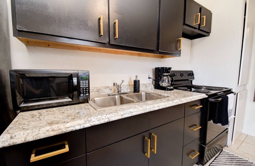 The Monochromatic Modern Studio is located behind the main house & recently re-designed to create the ultimate Lubbock Airbnb experience! The black & white theme makes for a sleek & sophisticated look while the decor reflects the southern charm of Lubbock. Find yourself at home with the amenities provided such as quality coffee, WIFI, a flat-screen TV with Roku (Netflix, Amazon Prime), & a private patio with seating, sunshade canopy, & string lighting for you to enjoy the outdoors comfortably.