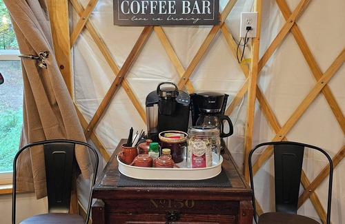 Just 6 miles from Paint Bank,VA in the middle of Jefferson National Forest, the Moon Shine Yurt is the perfect place to take in all the wonders and beauty of nature. Situated right on Potts Creek, this new 30' Yurt offers a one of a kind experience! The theme is a nod to those who ventured far into the Forrest escaping the prying eyes of civilization. The trout stocked streams gental rapids provide a soothing sound. Climate controlled and all the modern amenities needed to make your escape!