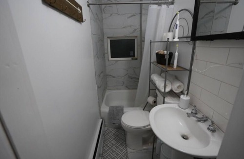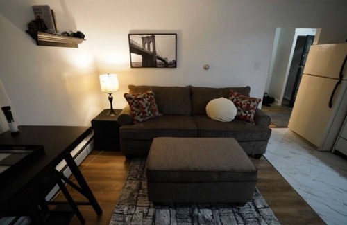 A modern New York style flat apartment, complete with brand new highly luxurious furnishings. Including WiFi and access to smart TV applications for all streaming services. A sleek and modern design, the kitchen is fully stocked with all the necessary cookware and utensils, making it easy to prepare meals at home. The bedroom is comfortable with a queen-size bed, luxurious linens and towels are provided, and the bathroom is stocked with complimentary toiletries.