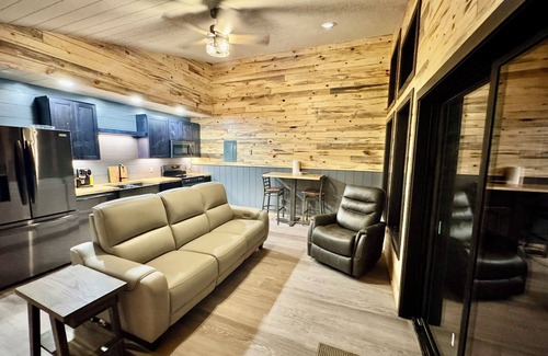 New construction suite with In-Floor Heat, AC, WiFi, Smart TV, king size bed, washer/dryer and dishwasher.