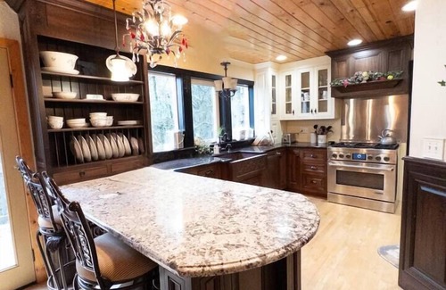 Best-rates for the The Mountain House starts from $251 per night with includes Wellness Facilities, Fireplace/Heating, Guest Services, Hot Tub, Internet, Laundry, Air Conditioner, Parking, TV, Barbecue/Outdoor Cooking, Child Friendly, Balcony/Terrace, Security/Safety, Bedding/Linens, Kitchen with all other amenities. Perfect for Weddings is committed to ensuring every guest experiences a comfortable and extraordinary stay, whether planning a romantic getaway, a honeymoon, a pet-friendly stay, or celebrating with the entire wedding party.