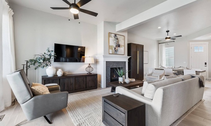 Welcome to The Mountain View Townhome, your ideal wedding accommodation in Loveland, Colorado. This luxurious two-story townhome offers both elegance and comfort, making it the perfect backdrop for your special day. With its spacious open-plan layout and charming private entrance surrounded by lush greenery, you can enjoy a romantic atmosphere while accommodating bridal parties or hosting intimate celebrations. This is where love stories become unforgettable memories.