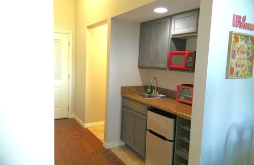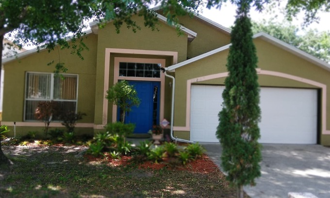 Residential area, quiet, safe and friendly neighborhood. Our place is in Orlando`s theme parks areas, a wide variety of restaurants, shops and 1mile to US 192 tourist district. 7miles to Animal kingdom, 10miles to Magic kingdom, 20 miles to Universal,16 miles to SeaWorld, timing depends on traffic the early you go the better. The place is renovated and will provide you with the privacy, comfort that you are looking for during your visit and your own private apartment for a low price. Our place is a studio apartment in the front of the house ,we live on the back of the house you use the front entrance ,we use back entrance. The apartment is private for you and your family. The only thing we share is the AC UNIT, the control is on our side.That I can can control anywhere on my phone on your request.The studio has a private bedroom with 2 comfortable double beds. Sofa bed in the living room, private bathroom with a fully equipped kitchenette SMALL KITCHEN AREA.Parking is on left side of driveway closest to the door,we park on the right side.We don't offer laundry area for guest