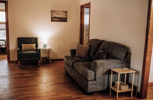 Welcome to The Mueller Haus, a charming 1950's retreat nestled in the heart of Hermann. This cozy 5-bedroom, 2-bathroom home blends vintage charm with modern comforts, making it perfect for families and friends. Just a stroll away from the Amtrak station, this home is perfectly located, being 1-block from the Hermann Trolley and Downtown. It includes off-street parking, a fully equipped kitchen, and Wi-Fi. Get ready for a memorable stay!