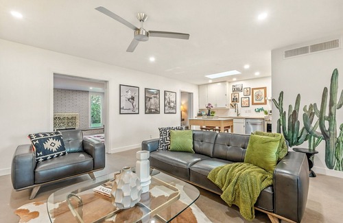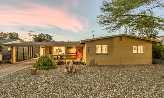Step into this architectural gem nestled in the heart of Phoenix’s historic Encanto neighborhood. Mulberry Manor is a thoughtfully curated 3-bedroom, 2-bath desert retreat that blends vintage charm with modern design — perfect for creatives, city explorers, and anyone craving a stylish, laid-back stay. Slow down, settle in, and soak up the Downtown vibes.