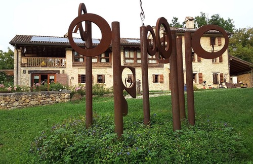The Music Country House is an ancient tourist residence on the Asolo hills. In the wonderful park there are seven musical-themed sculptures and a giant cello in corten iron by the artist Enrico Benetta.