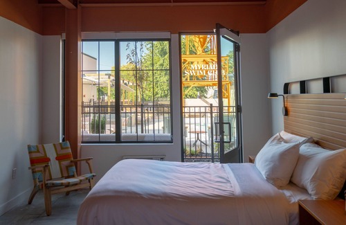 Recreational amenities at the hotel include an outdoor pool and a fitness center.