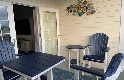 This 2nd floor unit has three bedrooms. The master bedroom has a king bed, a TV, plenty of closet space and a master bathroom with double vanity, water closet and large shower. The guest room has a queen bed and the third bedroom has a twin over full bunkbed. These two bedrooms are conveniently located next to a shared guest bathroom with a tub/shower combo.