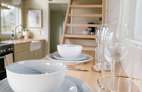 This cozy retreat features modern amenities designed for comfort and relaxation, perfect for both you and your wedding guests. The well-equipped kitchen comes stocked with essential cooking supplies, allowing you to prepare delightful meals during your stay. The loft area boasts an Endy queen mattress, providing a restful sanctuary after a day of celebrations. Gather around your own outdoor fire pit to create lasting memories while enjoying the tranquil surroundings. Although there is no television, the available Wi-Fi allows you to connect your personal devices, ensuring you can share your special moments online.