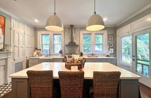 Welcome to The Newkirk, 4500 square feet of comfortable space for you and your friends and family to enjoy. The Newkirk is located in historic Kingston, NY, an exciting waterfront location in the Hudson Valley. Experience original 1856 charm as well as the modern comforts of a fresh renovation. Features 3.5 bathrooms, 4 bedrooms, and sleeps 8. For event rental options, please inquire for details via direct message - we have hosted catered rehearsal dinners, cocktail parties, and birthday events!