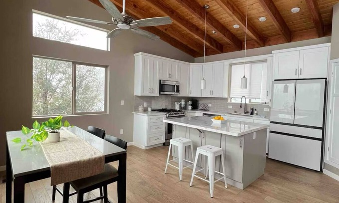 The North Peak Retreat - Mountain Modern! Views, Gym, Pet Friendly has 2 Bedrooms , 2 Bathrooms, and max occupancy of 6 people. The minimum rental for this property is 1 nights, but this can change depending on the season you plan on staying. Previous guests have given good rated it, and VRBO labeled it a top-rated House because of the excellent services rendered by the owner or manager of this House, and has consistently provided great experiences for their guests. Most families or guests that use it recommend it to their friends and some of them are repeat guests. House has a friendly neighborhood, and the Julian has interesting places to visit. If you want to learn more about the House in Julian, such as places to visit and things to do nearby, you can check below to learn more.