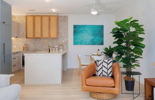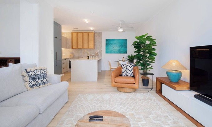 Step into a bright and stylish coastal retreat, where warm tones, natural textures, and vibrant touches create an inviting escape just moments from the beach. Sink into the sofa or leather armchair, coffee in hand, as the sea breeze drifts in and the morning news plays on the TV in the living room. Year-round comfort is guaranteed with the split system air cooling and heating.