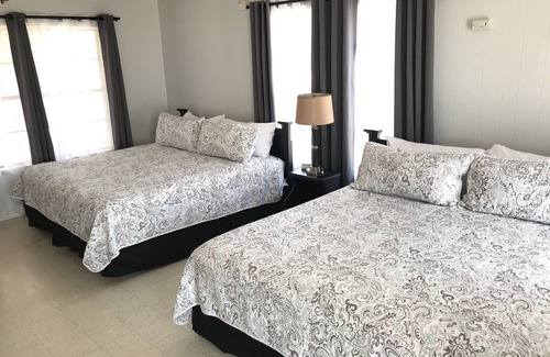 This property was run as a small motel for 50 years by my grandmother, marketed as a "hunter's paradise". We have been slowly renovating the property, and now have four rooms and the Gathering House that are available for select dates. Room #4 consists of two King beds, a bathroom with a tub and shower, a/c, heat, Keurig coffee maker, microwave, and a mini-refrigerator. We have added 55" TVs, and Wi-Fi is available to our guests! The room has had a "face lift", with new paint and black-out curtains. There is a breezeway right outside the room for you to use, as well as a charcoal barbeque pit.