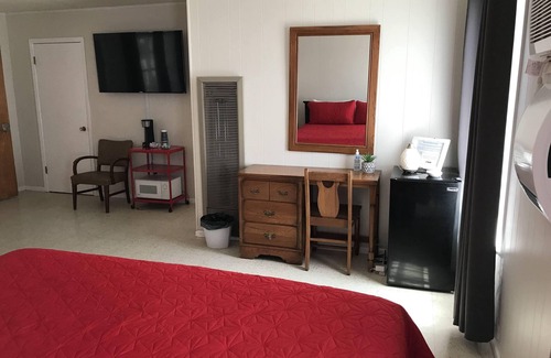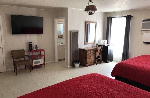 This property was run as a small motel for 50 years by my grandmother, marketed as a "hunter's paradise". We have been slowly renovating the property, and now have four rooms and the Gathering House that are available for select dates. Room #5 consists of two King beds, a bathroom with a tub and shower, a/c, heat, Keurig coffee maker, microwave, and a mini-refrigerator. We have added 55" TVs, and Wi-Fi is available to our guests! The room has had a "face lift", with new paint and black-out curtains. There is a breezeway right outside the room for you to use, as well as a charcoal barbeque pit.