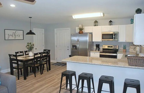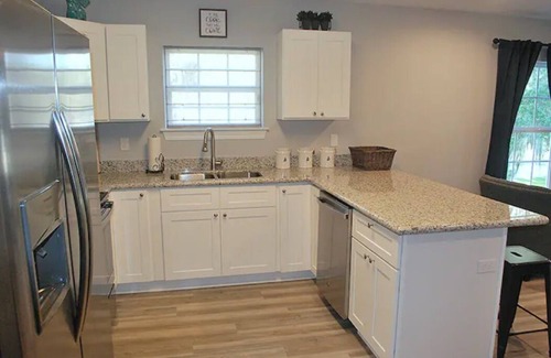 The house is newly built in 2020 with modern appliances and furnishings. The space will accommodate up to 6 guests; the master has a queen bed, and the second bedroom has one bunk bed and a full-size bed. The house is raised, and below there is an outdoor kitchen with a fryer, outdoor grill, boiling pot for seafood boils, and a wash area. There are also sitting areas under the house overlooking the oaks for outdoor relaxing. The driveway has enough room to park a boat and trailer, and a public launch is only 2 miles away. The kitchen is fully stocked with all essential cooking ware for you to enjoy home cooked meals during your stay. Don't want to cook, no problem, the property is minutes away from several outstanding local restaurants. All other living essentials are already awaiting you to make this not only an enjoyable, but hassle-free stay and get the most out of your time with family and friends.