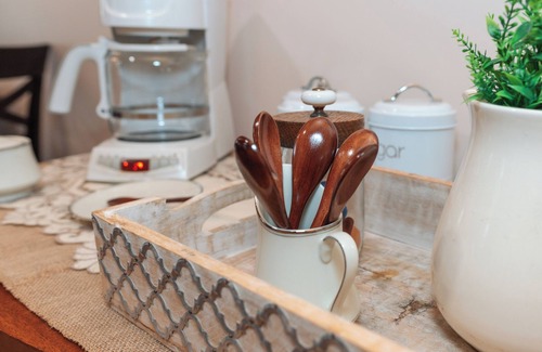Home is fully equipped with everything you need for your stay including a stocked kitchen with coffee maker, microwave, oven, toaster, blender, pots, and pans. Coffee bar with creamer, tea bags, sugar, and coffee grounds provided. Smart TV located in living room area with free WIFI access. Initial supply of paper towels and toilet paper provided. Towels, bed linens, dish soap, and hand soap provided. Charcoal grill available for use- no charcoal provided.