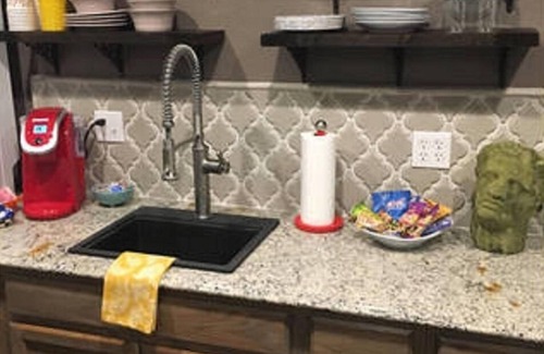 The Oasis at Wolflin. Beautiful and unique open concept house with amazing decor. Enjoy a nice getaway in this cute and cozy small house. Amazing shower with wood look tile and river rock shower floor, perfect for relaxing after a day of hiking in Palo Duro Canyon.