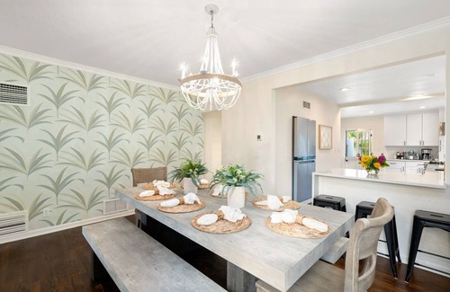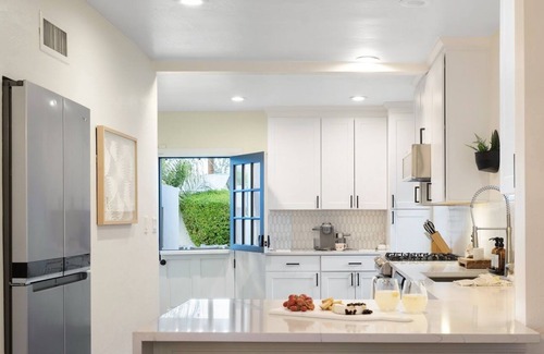 Inside, the house was beautifully designed by Dawn Kamal Interior Design and Nest by Palma, with cozy couches that make you feel right at home, premium mattresses and even a secluded getaway for the young ones. The separate casita is perfect for added privacy with its own entrance from the patio, a full bathroom, coffee station, and mini refrigerator. It's a secluded getaway for anyone who wants their own space to relax and unwind.