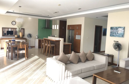 The villa is far from city downtown but it is located 10 mins on foot to the beach with ocean view, 5 mins to two golf courses of Danang by taxi or you can work. The villa is also located in the middle way from Danang to Hoian.