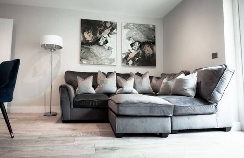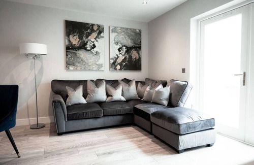 The open plan kitchen lounge is a great place to relax after a days exploring around the town. The kitchen is fully equipped with everything you would need for a self catering stay including dishwasher, cooker, fridge and freezer. The lounge area has a comfy corner sofa, 50inch flat screen TV and a dining table making it a central hub for the family.