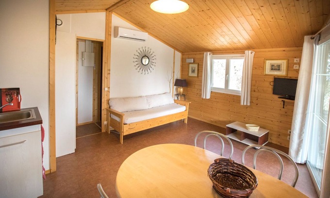 Pleasant chalet in a property of 2 hectares in the woods of Laoul on the heights of Bourg-Saint-Andéol, 320 m above sea level, south of the Ardèche, 15 minutes from the Gorges de l'Ardèche and the Cave of the Pont d'Arc.