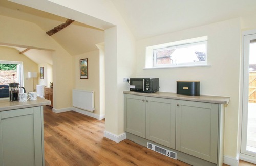 The Old Piggery, a single-storey farm stay, consists of an open-plan living space with electric oven, ceramic hob, microwave, fridge with icebox, dishwasher, washing machine, kettle, toaster, dining seating for four people, and sitting area with Smart TV. The bedrooms consist of two super-king-size (zip/link), one with en-suite shower room and the other with en-suite bathroom. Outside, there is an enclosed garden with gravelled area, patio, lawn, barbecue, and furniture, along with off-road parking for two cars. One well-behaved dog welcome. Sorry, no smoking. You’ll find a shop in 1.5 miles, pub in 0.1 miles, lake in 1.4 miles, and river in 1.5 miles. WiFi, fuel, power, bed linen, and towels inc. In rent. Old Piggery is a charming base for a rural retreat in Shropshire. Note: Steps into property – please take care. Please note: this property accepts a Friday changeover only. Please note: there is a £20 pet supplement for this property