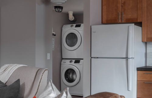 A full bath and full size washer and dryer complete this space. Extra linens for the beds and towels are provided.