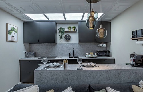 Bedroom: Kingsize (5ft) Bed Ensuite: Cubicle Shower, Toilet. Gas central heating, electricity, bed linen, towels and Wi-Fi included. Welcome pack. Bike store. No smoking.. Welcome to The Old Post Office, a lovingly renovated luxury ground-floor apartment, perfect for couples seeking relaxation, adventure, and exploration. Nestled in the charming town of Haltwhistle—the official ‘Centre of Britain’—this stylish retreat offers both convenience and tranquillity, with local cafés, pubs, shops, and takeaways all within walking distance. Step inside this former post office to discover a bright, open-plan living area, designed for comfort and style. The well-equipped kitchen makes dining in a pleasure, while the inviting lounge area boasts a large TV and a modern feature fire, creating the perfect ambiance for cosy evenings. The king-size bedroom promises a restful night’s sleep, and the luxurious shower room provides a refreshing start to your day. Retaining some original features this ground floor apartment is a super place to stay whether you’re an avid walker, a history enthusiast, or simply love to explore, Hadrian’s Wall is less than a mile away, with spectacular sections such as Steel Rigg and Cawfields just a scenic stroll from your door. Public footpaths along the wall provide endless opportunities to take in breathtaking landscapes and rich history. Beyond Hadrian’s Wall, Northumberland’s diverse beauty awaits—from golden sandy beaches and dramatic castles to the renowned Dark Sky National Park. Discover the historic towns of Hexham and Corbridge, filled with charming shops, cafés, and restaurants. Within an hour’s drive, you can reach Carlisle, Kielder, the Scottish Borders, the vibrant city of Newcastle, and even the Lake District, making The Old Post Office a perfect homely base for touring the region. For those traveling with friends or family, The Old Post office can be booked alongside The Hideaway, offering the perfect combination of privacy and shared experiences. Together, these two properties provide a fantastic base for exploring everything this stunning area has to offer. Whether you seek peaceful walks, exhilarating cycling routes, or cultural discoveries, The Old Post Office offers the perfect escape—blending luxury, location, and adventure into one unforgettable stay.