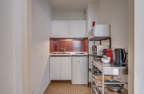 - A small kitchen equipped with a fridge, a small oven, an electric hob, a microwave, a toaster, a kettle and a Nespresso coffee machine. A kit containing a few coffee capsules, tea bags, sugar, salt, pepper and olive oil will be available on site.