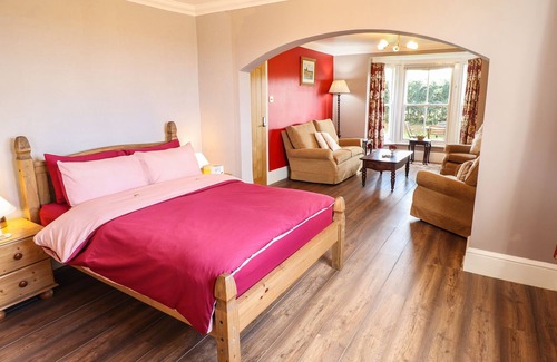 Amenities: Oil central heating. Electric oven and hob, microwave, fridge/freezer, washing machine, dishwasher. TV, WiFi and DVD player. Travel cot, Moses basket, baby bath, bed linen and blankets and two high chairs available. Fuel and power inc. in rent. Bed linen and towels inc. in rent. Ample off-road parking. Private garden with lawn and furniture, dual fuel BBQ, hammocks, shared garden with decking and furniture. Two well-behaved dogs welcome. Sorry, no smoking. Shop 4.4 miles, pub 3.3 miles. Note: There are two friendly resident cats on the premises. Note: This property is fully wheelchair accessible and offers the relevant aides such as drop down grab rails, ramps, shower chair