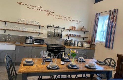30 miles from Ironbridge Gorge in Burwarton, The old school house features accommodations with access to a hot tub. This property offers access to a patio, free private parking, and free Wifi. This apartment includes 3 bedrooms, a living room and a flat-screen TV, an equipped kitchen with a dining area, and 2 bathrooms with a hot tub and a washing machine. Guests can enjoy a meal on an outdoor dining area while overlooking the garden views. The accommodation is non-smoking. Guests can relax in the garden at the property. Birmingham Airport is 47 miles from the property.