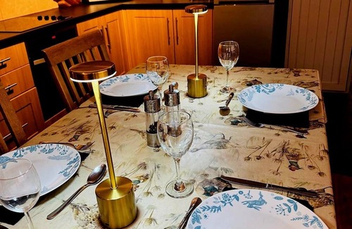 The cottage offers three inviting bedrooms—one with a king-size bed and two with single beds—ideal for a peaceful night’s sleep after a day of adventure. The spacious, fully equipped kitchen includes everything you need to cook up a storm, complete with a dining table for relaxed family meals.