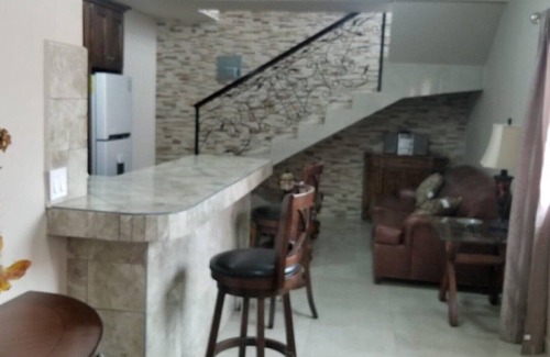 A nice apartment with one big bedroom and a folding bed coach in the living room for extra 2 persons. This home also has 2 restrooms both with showers, kitchen with stove and dishes a big inside and safe parking with a nice outside place to rest with a hot water Jacuzzi an outside complete restroom, it is 5 minutes from the beach and very near downtown, around 25 min from el Valle de Guadalupe.