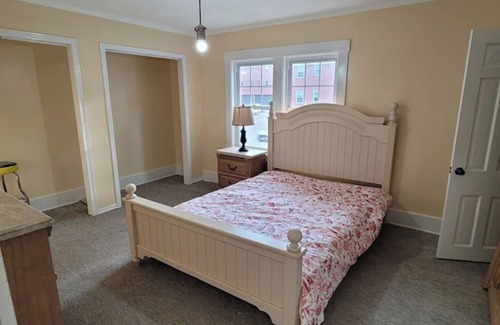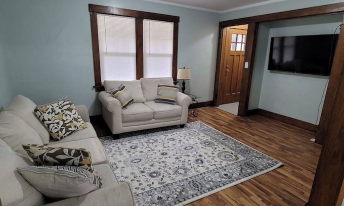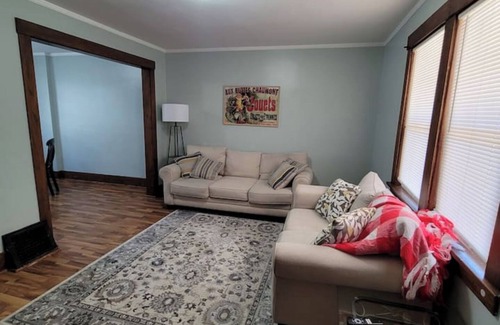 Perfect location in Midtown where you can walk to the popular Blackstone District, Midtown Condo, or Dewey Park with dog park. This townhome has new carpet upstairs where the 2 bedrooms and bath are. Queen beds in both rooms and 2 twin beds with folding bed frames available to use. Big screen TV in the living room and high speed internet. Full kitchen is fully stocked.