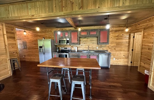 - Secluded Large Group Authentic Cabin with fishing, a hot tub and wi-fi