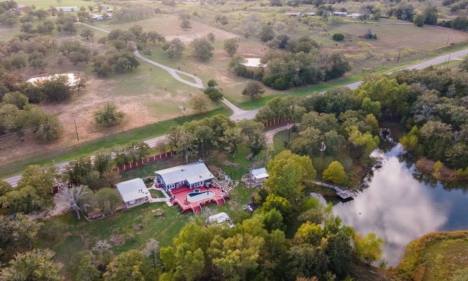 The house is located in a rural area that is centrally located to Austin, Lockhart, and Bastrop. The house is 22 miles from Austin Bergstrom Airport, 30 miles from downtown Austin, 15 miles from downtown Lockhart, 20 miles from downtown Bastrop, and 13 miles from COTA.