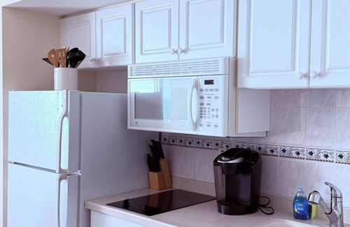 Relax in comfort with two queen beds, a fully equipped kitchen, a spacious bathroom with a tub/shower combo, and a private balcony offering sweeping views of the ocean—perfect for your morning coffee or evening unwind. The condo is tastefully furnished and designed with everything you need for a relaxing stay.