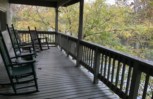 The River Porch tends to be the focal point of the cabin. Rocking chairs provide the perfect spot from which you can lose yourself while watching the Nolichucky River flow steadily by. Early morning coffee tends to be a favorite activity for the River Porch!