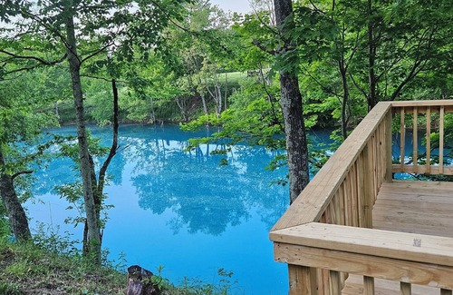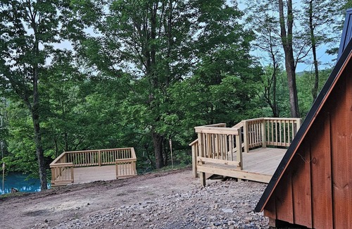 - Waterfront Glamping Cabin On Private Blue Water Mountain Top Lake