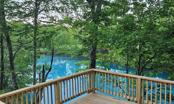 Our modern bunk house style cabin retreat is the perfect off grid getaway for families and groups. The cabin features 2 twin over full bunks and 2 twin trundle beds outfitted with memory foam mattress, cluster memory foam pillows, fresh stylish linens and season appropriate blankets. We provide towels and life jackets fir enjoying our pristine blue water Oasis. Some communal floating tubes are available but feel free to bring your own. The cabin also features a modern compact farm house style dining table, 2 outdoor picnic tables, fire ring, propane grill with side burner, percolator for your morning coffee or tea and 2 decks to enjoy the stunning views of the aww inspiring blue oasis! There is a communal floating docks and a private dock being built for this cabin to be completed by the end of June 2024. There's hiking, fishing, wildlife and pure relaxation to be had!