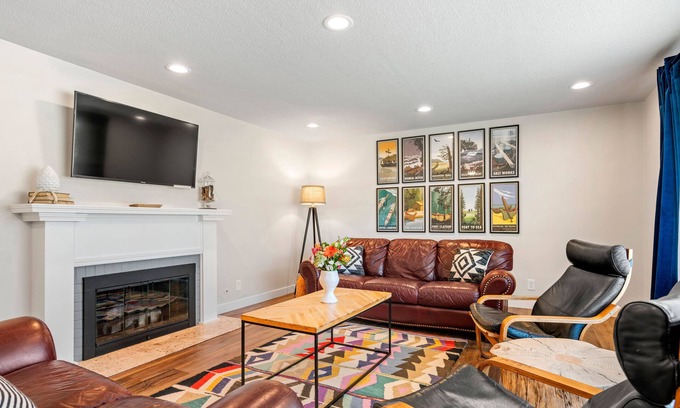 The Pacific Northwest house has been newly updated (2021) with vacationers in mind. There are three bedrooms (master: king bed, 2nd bedroom: queen bed and full size crib, 3rd bedroom: queen bed), a large living room, two full bathrooms (one in the master suite). Each bedroom has a TV, as well as the living room for your own streaming services. The full kitchen will delight chefs with an array of cooking and baking dishes and utensils - perfect for those family dinners while you vacation. A large covered patio looks out over a small privately owned lake and is furnished with leisure and relaxation as the plan. Down nearer to the lake you will find a firepit available for guest use with plenty of firewood provided. The large grassy back lawn is fully fenced and perfect for playing on. Plenty of parking is available in the driveway for up to four vehicles (we are sorry, but the garage is for host's use/storage only and is kept locked). Lake access is not allowed due to liability.
