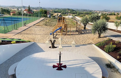 There's a huge pool (16x6 mts) with security rigid cover, huge lawn area, tennis court / football pitch, inflatable for the children, pergola, 'Távola redonda' table with 6 meters diameter with a kitchen and wood oven right next to it and much more. The inside offers 2 generous lounge areas with 100 and 70 meters and 6 bedrooms. Huge parking area.