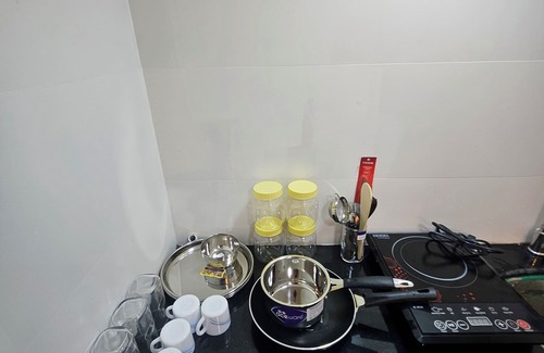 Kitchen Usage: The kitchen is compact and best suited for light cooking.