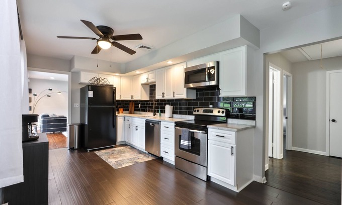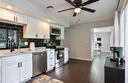 Escape to our newly remodeled 3BR, 1.5 bath Ranch home; where modern comfort meets serene relaxation. Nestled in a quaint neighborhood, this beauty sleeps up to 6 adults and even offers two large family rooms!