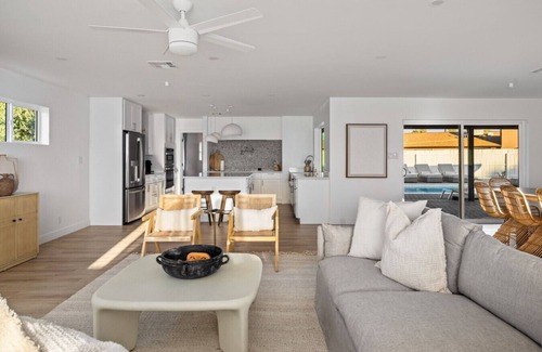 Guests have full access to the home, including all indoor and outdoor spaces. The heated pool, backyard lounge, and thoughtfully designed living areas are yours to enjoy. A keyless entry system allows for seamless self-check-in and check-out. Driveway parking is available.