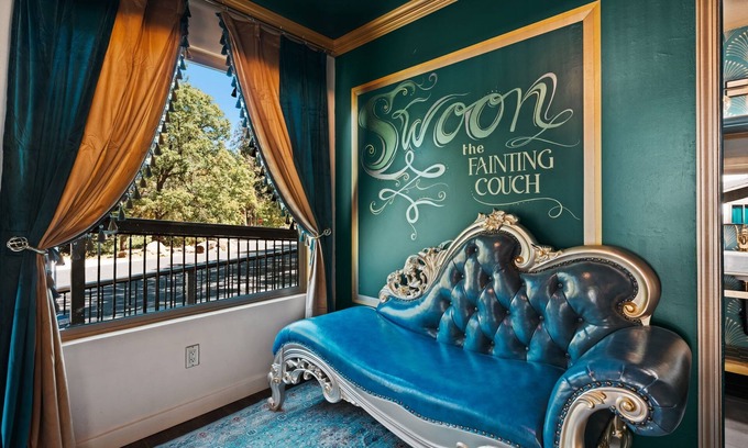 Welcome to the Fainting Couch, a maximalist boutique hotel in Cobb Mountain, CA. It is ideal for romantic getaways, family vacations, and special events. Prepare to swoon over The Parlour House, a two-bedroom house that can accommodate 4 guests, perfect for a group getaway. Please note pool access is shared with other guests.