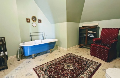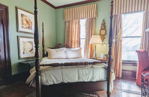 This historical house is something to behold with its one of a kind interior and beautiful wooden embellishments. The Pea Ridge Room is located on the second floor of The Town House Restaurant and Inn and features a queen bed and a spacious bathroom with a vintage claw-foot tub. Guests have access to a lovely study and a wrap-around porch complete with rocking chairs and wicker furniture.