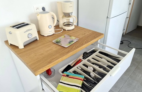 The kitchen is equipped with an oven, a stovetop, and a refrigerator, as well as a coffee maker, an electric kettle, and a microwave. Bathroom amenities include towels and toilet paper. And you won't have to pack extra clothes, because you'll have a washer and dryer, too. Other amenities include a BBQ grill, bed sheets, an ironing board, and limited housekeeping.