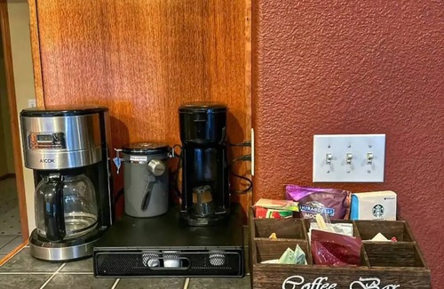 Your stay at The Peaceful Escape comes with fantastic amenities that cater to group gatherings and romantic getaways alike. With five well-appointed bedrooms, including two luxurious master suites, your guests will enjoy ultimate comfort. Gather around the fire pit under the stars or savor coffee from the fully stocked coffee bar on one of the two expansive decks surrounded by nature. The property is equipped with a modern kitchen for effortless meal preparation and entertainment, along with TVs in every bedroom featuring popular streaming services for cozy movie nights after a day of adventure.